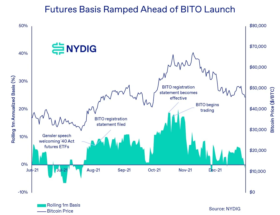 WEEX 唯客注:BITO 上市前的期货基差变化