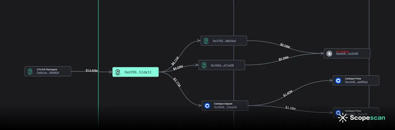 第二个事件是一个地址将其持有的资产转移到 Coinbase 进行以太坊质押。