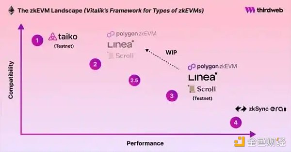比如Starknet早在2018 年 1 月的种子轮融资,投资人中就有V神;而不同zkEVM的项目在分析自己的技术路线时,也会不约而同的放出V神对zkEVM的框架划分: