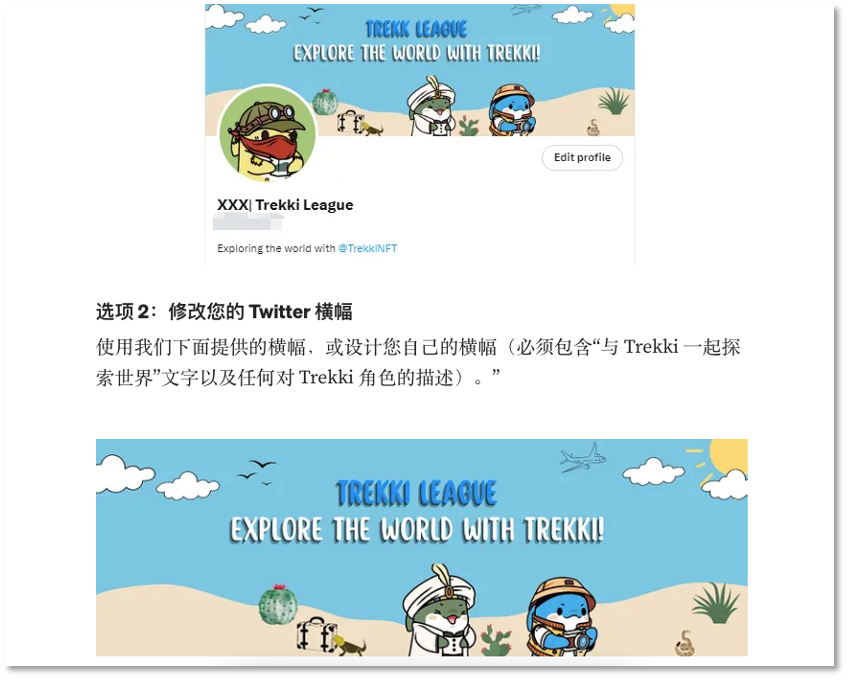在海外社交平台,Trekki运营者举行了多场线上Space交流,创建了Discord社区,并招募999名会员加入Trekki联盟,先搞起了社区与共识。想要加入联盟,用户需要在个人ID后缀标明联盟名称,并修改规定样式的Twitter横幅。