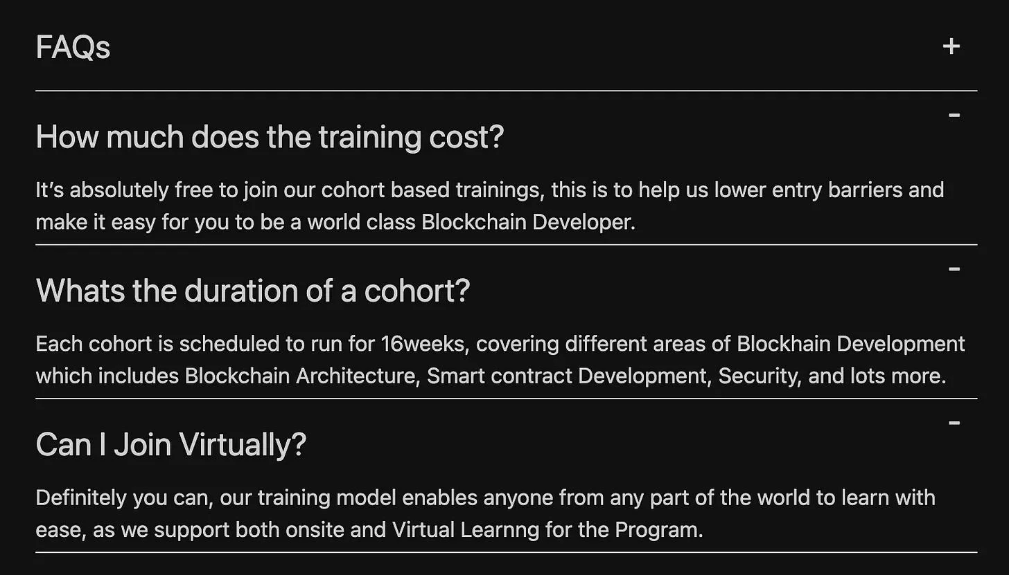 再次强调,整个项目都是免费参加的,无论是亲自参加还是在线参加。我们了解到 Web3 Bridge 的持续存在依赖于创始人的拨款和个人投资(时间和金钱)。
