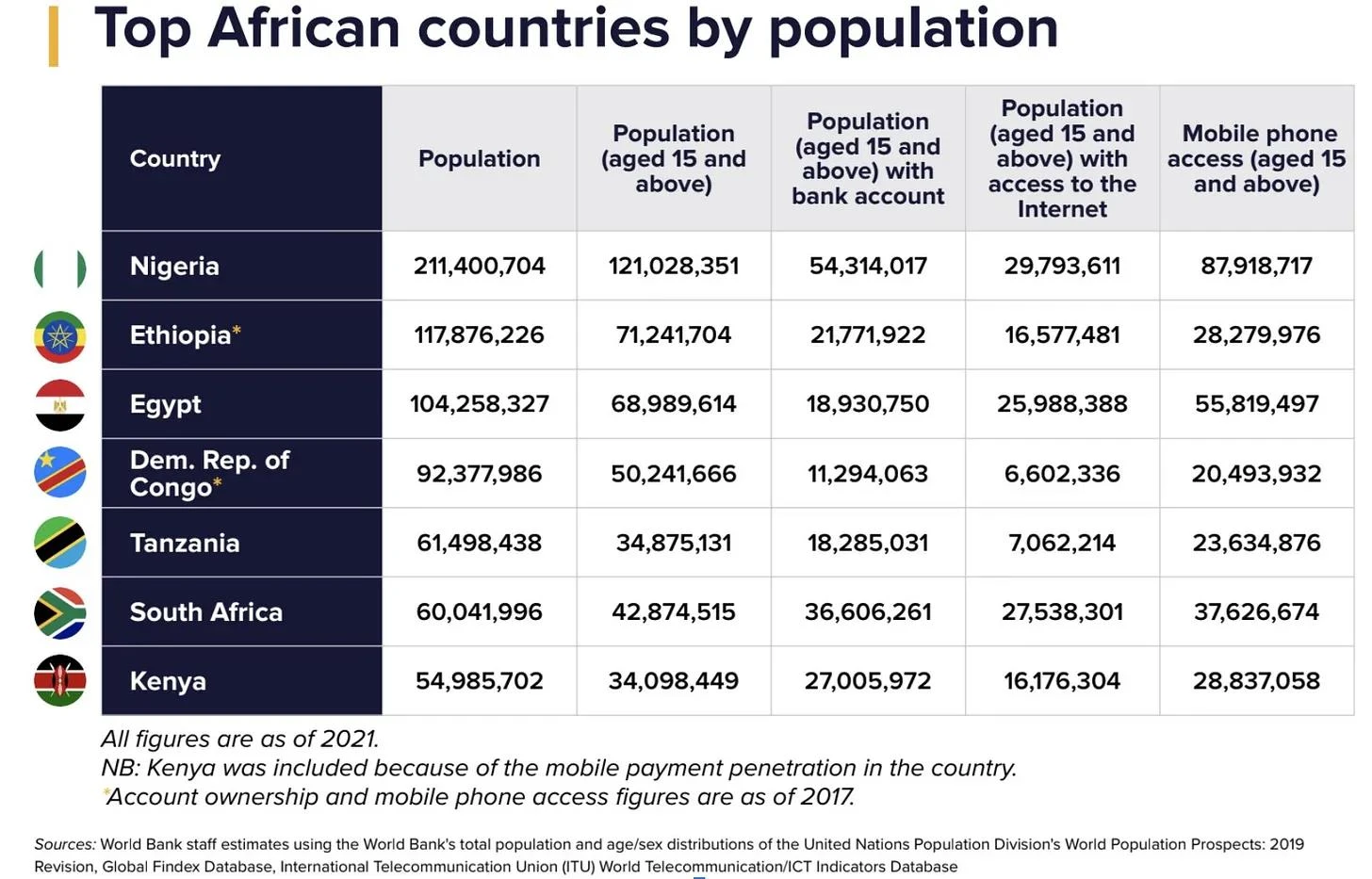 据估计,内罗毕有 60% 的人口生活在贫民窟中。此外,世界银行估计尼日利亚和肯尼亚的人口中有约 50% 生活在贫民窟中。