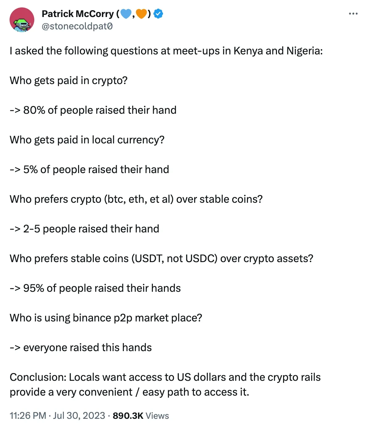 换句话说,加密货币系统对尼日利亚或肯尼亚约 50% 的人口来说,在例外情况之外还不具备相关性。
