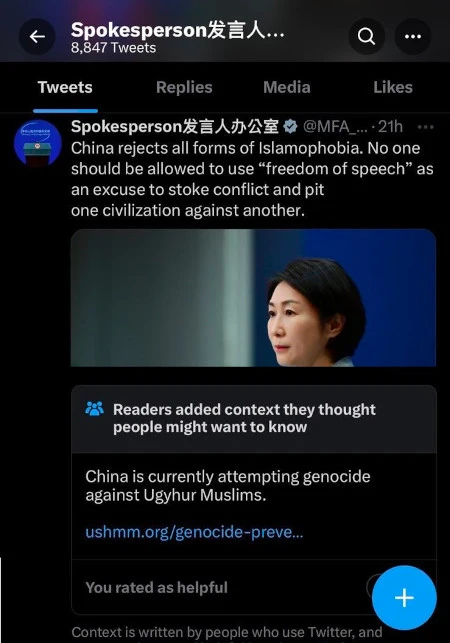与此同时,得到最高有用性的 Notes 看起来是这样的。这次,因为这些 Notes 实际上在 Twitter 上显示出来,我可以直接截屏一个: