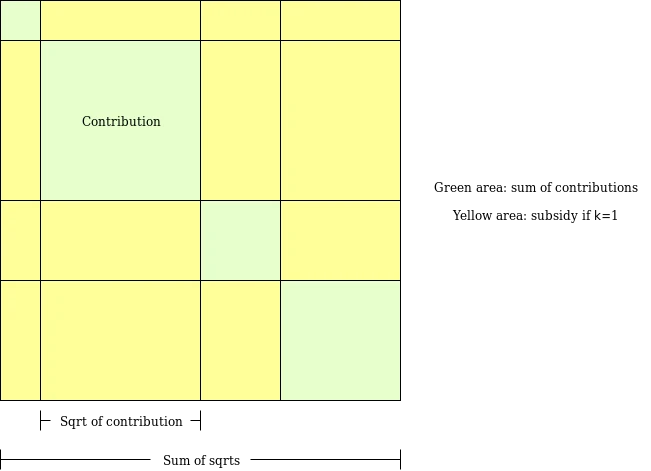 为了实际了解这意味着什么,让我们探讨一种我几年前为类似目的设计的算法:Pairwise-bounded quadratic funding(新的二次融资设计)。
