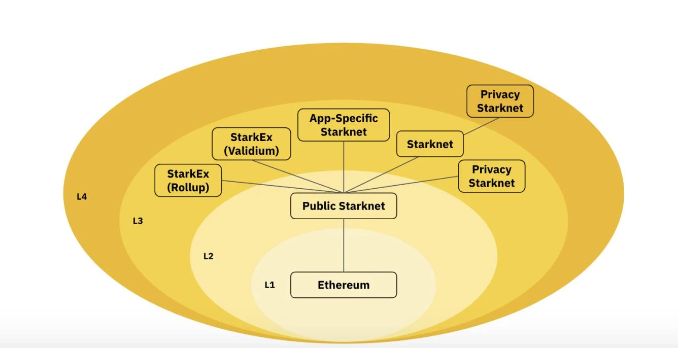 StarkWare 提出了一个多层网络的概念,其中L2用于通用扩展,而L3用于定制扩展。