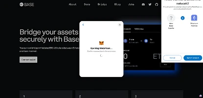 步骤 3 :连接钱包,然后系统会提示切换到 Base 区块链网络