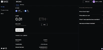 资金转移到 Base 可能需要多达 5 分钟。在继续之前,请确保在钱包中已确认交易。