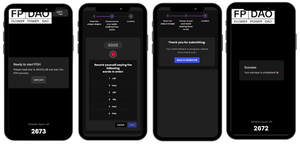 在进行 PoH 验证时,用户需要上传自己的一张照片、一段视频和一段音频,以及进行 AI 面部识别。这些资料被随机发送给已通过 PoH 验证的多个版主进行审查,他们会投票接受或拒绝用户的 PoH 验证。当收集到足够数量的“批准”后,该用户的验证才正式被 Modclub 平台批准。