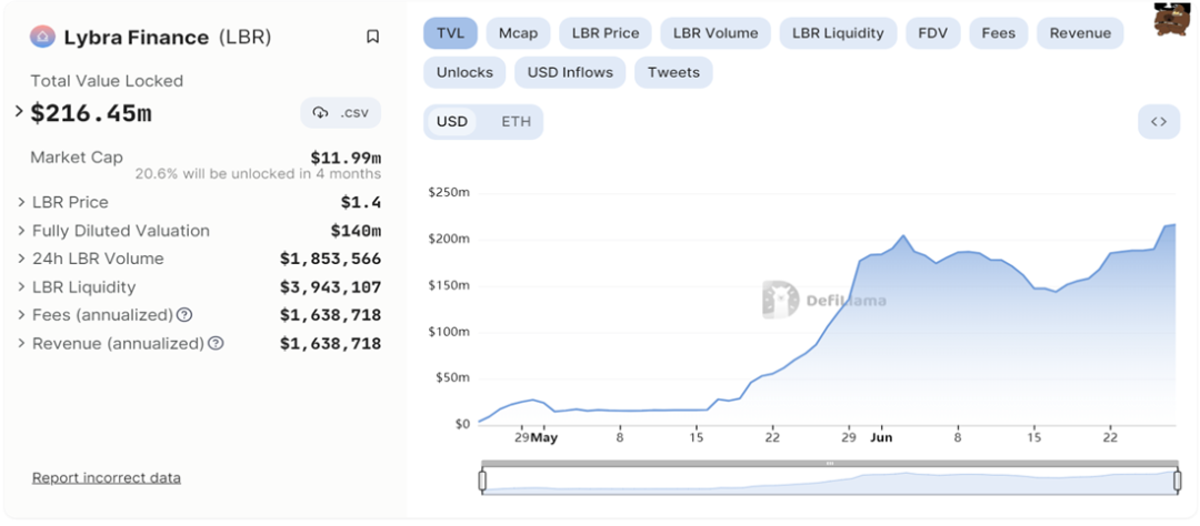图 3-1 Lybra Finance 的 TVL 变化曲线