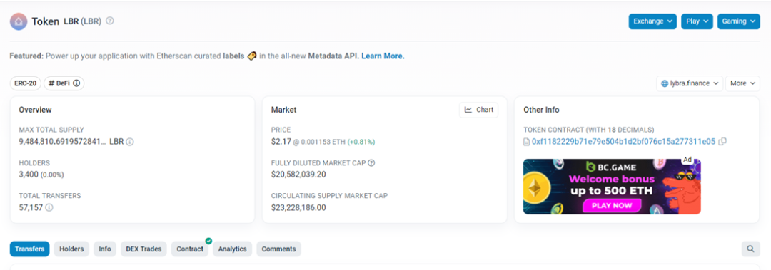 $LBR 共有 3400 个持有人,发生过 57157 笔交易。相对来说,持有人数较少,后续持有人数若能进一步扩大,则代币可能进一步上涨。
