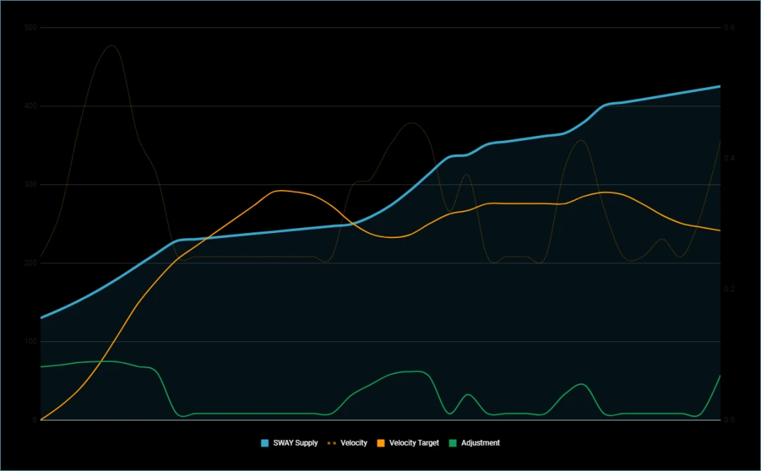 SWAY 合约将部署在 L1 以太坊上,初始供应量为 975 亿。在 Exploitation 启动之前,即 Influence 的首个完全可玩版本发布之前,SWAY 将被“灵魂绑定”,即不可转让(除了包括 SWAY Governor 和支持初始分发的地址在内的白名单)。