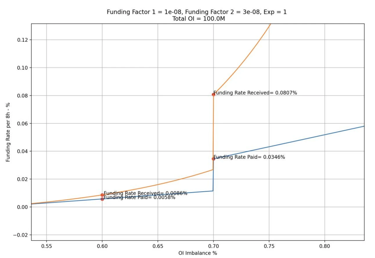 资金费率将分段进行调整,强势一方持仓/全仓位在 0.5 – 0.7 之间时,资金费率处于较低水平;达到 0.7 时,将会提高到较高水平,加大套利空间,促使套利资金进入,从而恢复多空平衡。