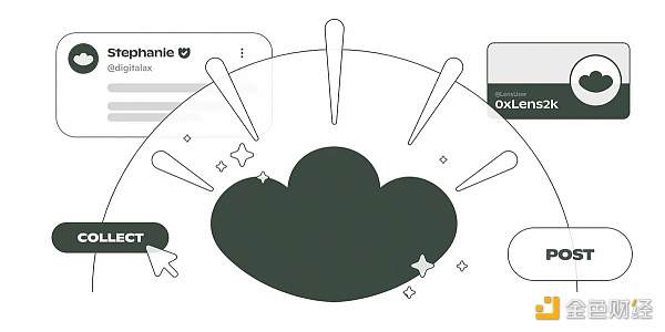 与仅仅使用原生链上数据作为社交图谱不同,一个想法是在公共区块链之上构建一个新的、专用的社交图谱协议。例如,Lens Protocol 利用了一个关键观察结果,即在社交应用中,存在着社交互动的共同因素,他们将这些因素抽象为不同的链上行为,如“发布”、“评论”和“镜像”(即分享或转发)。