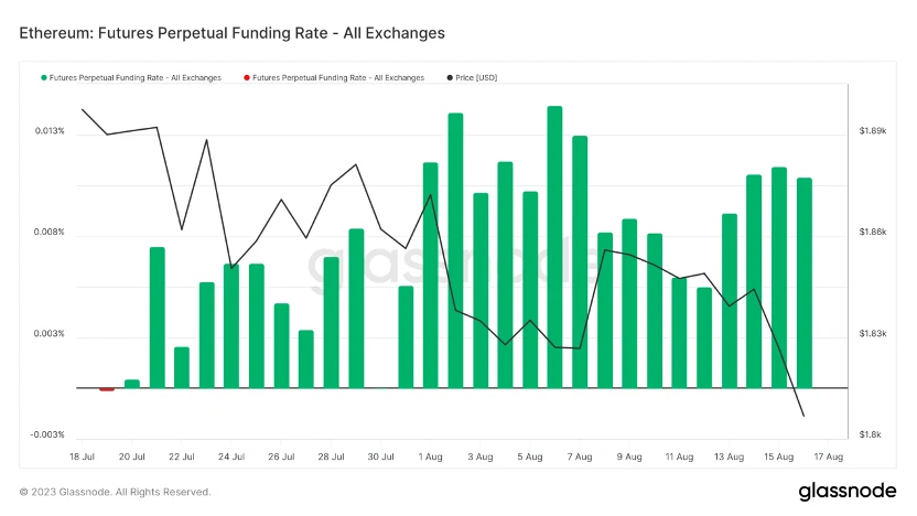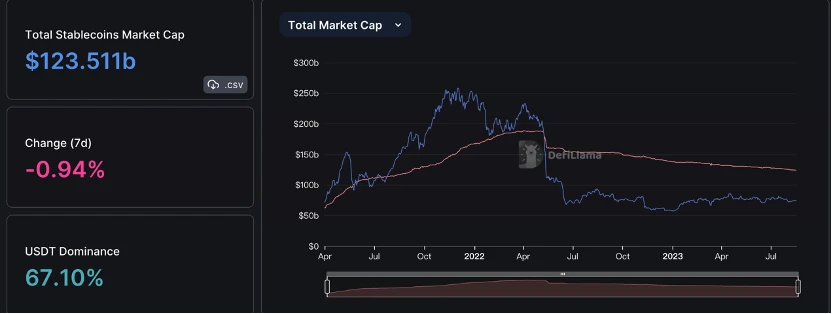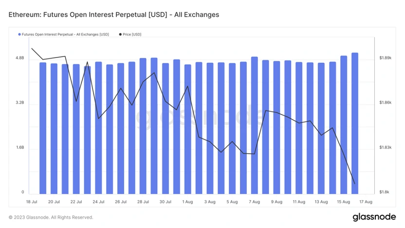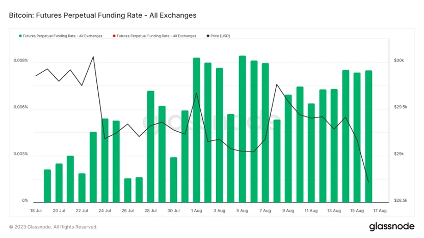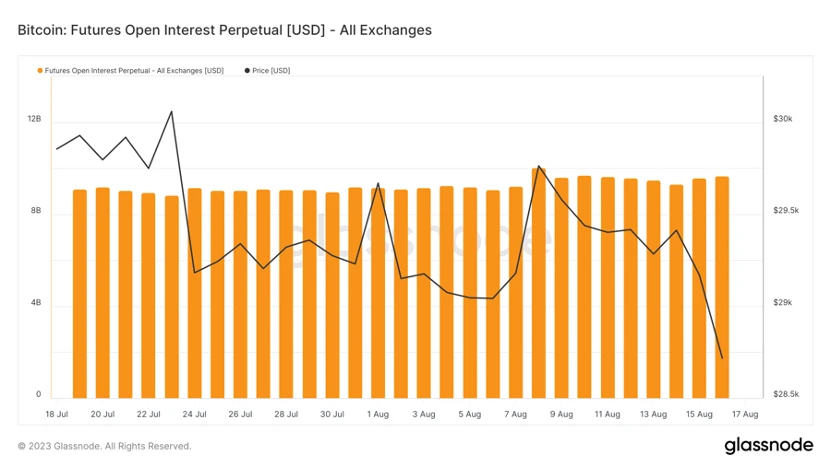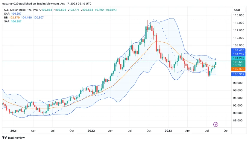 货币流动性趋紧。美国通胀压力犹存,对欧美央行在更长时间内维持高利率的预期持续升温。美联储纪要偏鹰派,暗示 9 月继续加息, 10 月期美债收益率创 2008 年以来新高。美元指数开始反弹,将压制所有风险资产价格。美股周线级别下跌。加密市场跟随美股表现弱势。