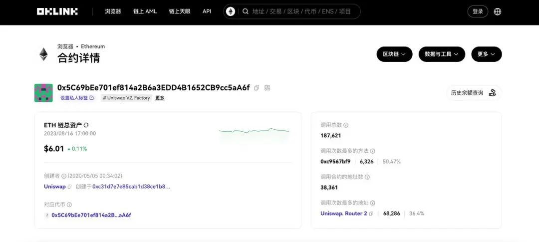 上图为Uniswap V2的工厂合约地址(来源:OKLink)