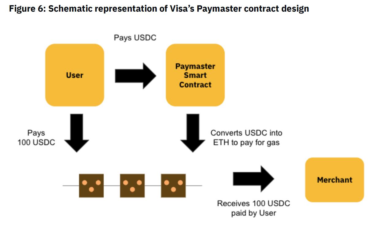 VISA:Visa 展示了使用 Paymaster 合约的解决方案,以抽象出基本的区块链交互并通过自托管的智能合约钱包改善链上用户支付体验。 目前,该案例尚在概念验证阶段,但目的上旨在减少用户通过其钱包进行交易的摩擦,用户可以以任意 token 做 gas 费,并且由 Paymaster 覆盖 gas 成本,探索数字交易对消费者的“未开发的潜力”。