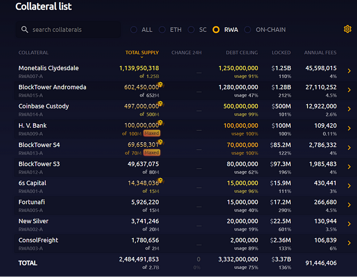老牌DeFi品牌MakerDAO(MKR)发行的链上美债,以及其发行的稳定币DAI,都是目前RWA的常见用例之一。