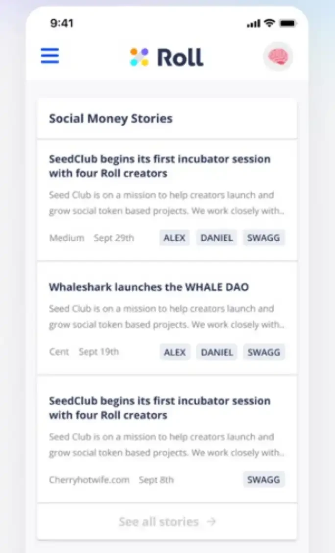2020 年,出现了由 Gary Vaynerchuk 等投资者投资「 Roll +社交 token」平台,创作者可以向粉丝发行他们自己的 ERC-20 token 以换取服务/访问权限,但由于可执行性和新用户摩擦阻碍了他们的发展,这类平台(比如 Rally )很快就倒闭了。
