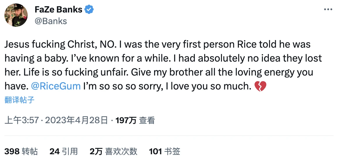尽管 FaZe Banks 已经是 friend.tech 最贵的人物之一。但一个有趣的事实是,我们很难将其称之为“推特 KOL”,其最新一条推特发布时间远在 4 个月之前。