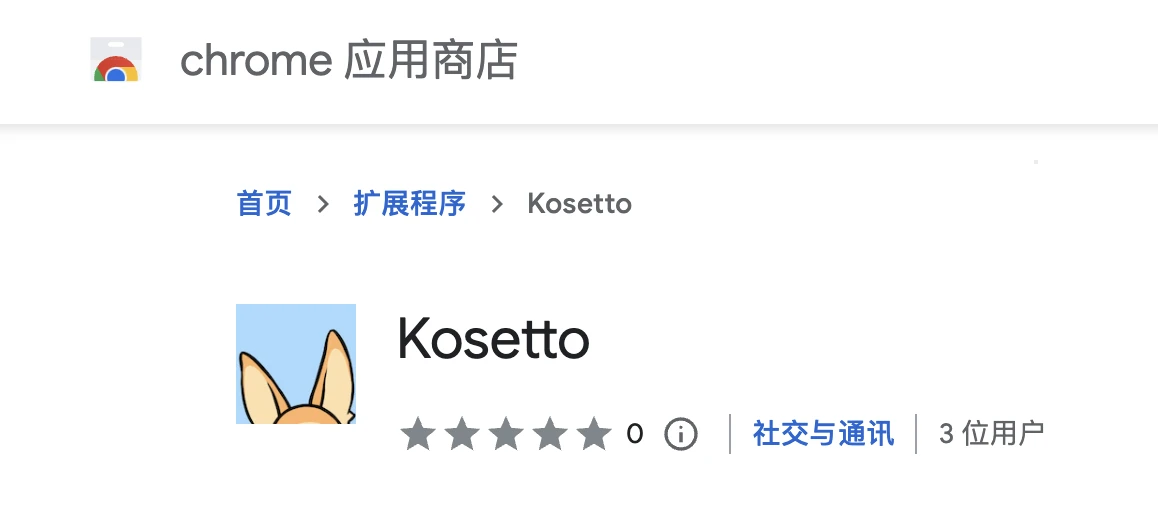 2023 年 1 月 29 日,Kosetto 正式上线 Chrome 插件商店,用户可在该插件上使用贴纸功能。但遗憾的是,该产品并未获得流行。仅拥有 3 个下载数量。且版本更新停滞在了 1 月 31 日。