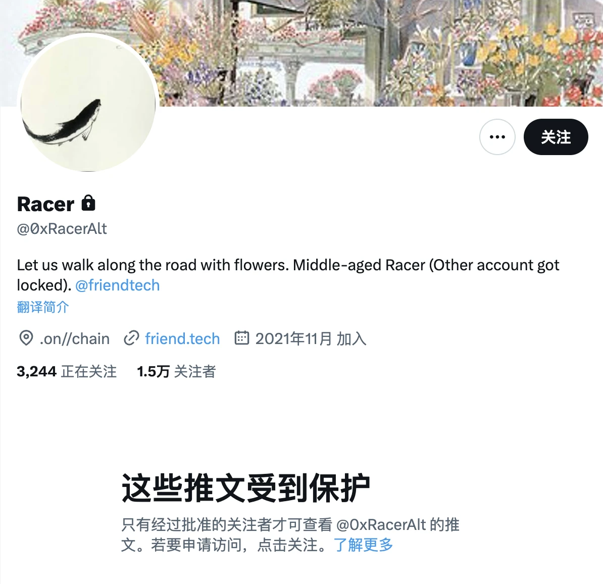 遗憾的是,目前 Racer 已将自己的推特设置为隐私模式。未经批准的关注者无法查看其推文。