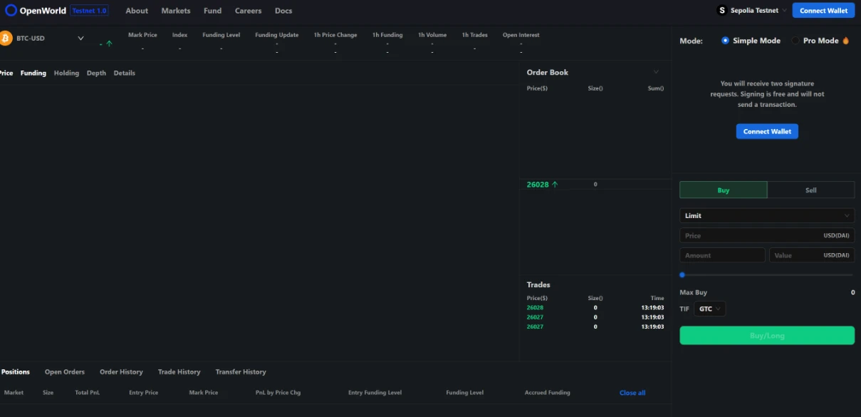 OpenWorld 是基于 zkLink 的去中心化衍生品交易所。(测试阶段)