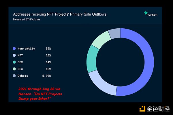 Nansen 在追踪 2021 年和 2022 年 NFT 铸币收益发生的情况方面做了出色的工作。 我们所看到的实际上是令人惊讶的......以下是 2021 年(截至 8 月)资金的去向: