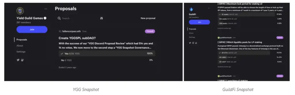 点开 YGG 和 GuildFi 的 Snapshot ,我们只能看到几个历史久远的投票:
