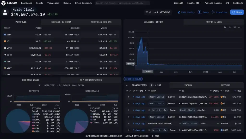 Merit Circle 国库地址资产情况,Arkham,Mint Ventures 制图