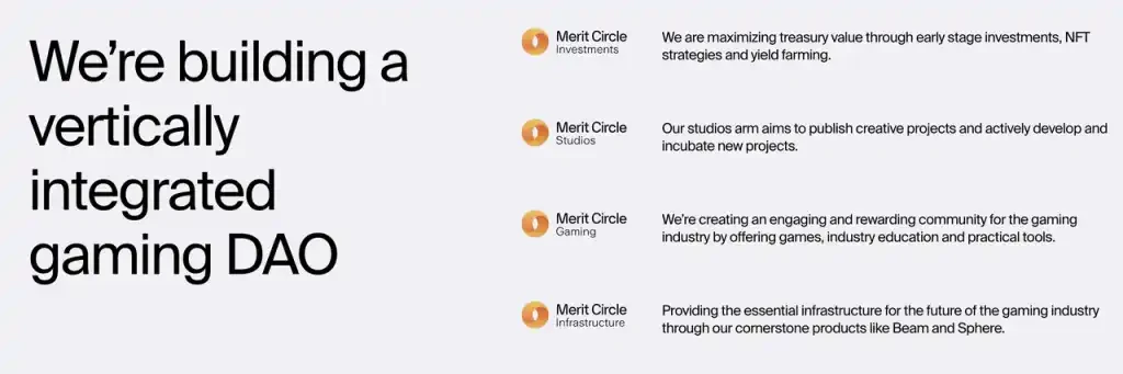 虽然在 21 年发布的白皮书中,YGG 和 GuildFi 都表示希望这个游戏公会的最终目标是成为一个 Gaming DAO,但实际上真正达成这个目标的却是 Merit Circle.