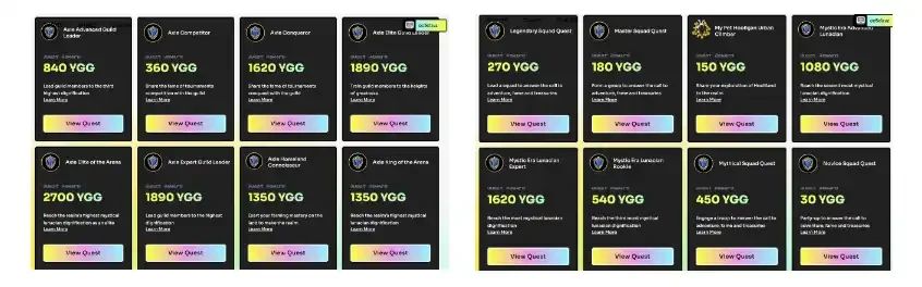 GuildFi 则采用游戏内积分打造了一个任务&成就系统,每达成对应的任务、成就,就能获得对应的积分奖励。