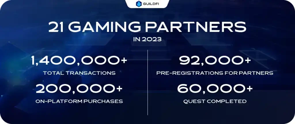 在 GuildFi 的半年度总结里,他们表示「在过去的一年(22 下半年 – 23 上半年)里,平台内购买量超过 200, 000 次,比上年增长 42% ,显然我们的社区对我们平台上的游戏产品的热情正在上升。值得注意的是,《暗黑破坏神 IV》的 Lootbox 活动以超过 65, 000 次的购买量夺得冠军,而 KOF Lootbox 的购买量则超过 30, 000 次。」在这样的合作下,GuildFi 一年里合计为 21 个合作方合计带来的用户预注册量为 9.2 万名——平均下来每款游戏不到 5000 个注册——考虑到预注册通常不需要钱包交互,也很容易让撸毛党在不错的项目上一次开很多个号,实际带来的有效用户量更是堪忧。