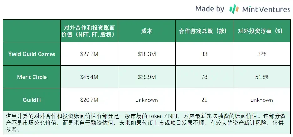4.2 对外合作和投资能力:MC 居首位,YGG 规模和收益率次之,GF 规模最小,收益率未知