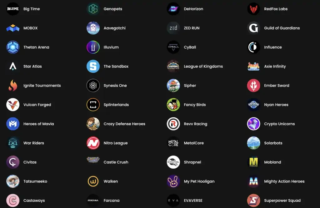 YGG Partnered Games (持有资产,包括一级投资和二级市场购买,chainplay.gg 不完全统计)