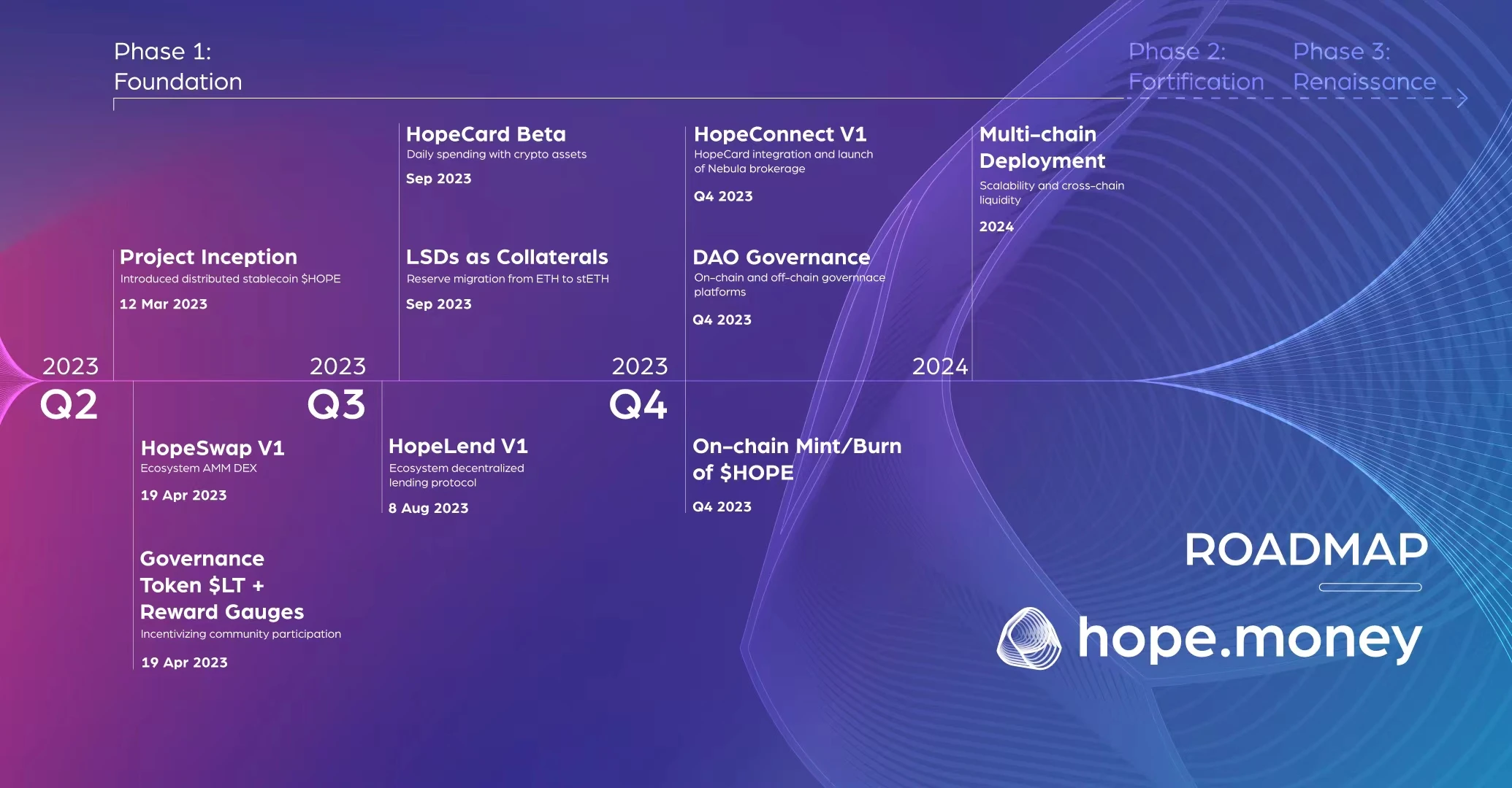 这个阶段的重点是基础设施驱动的增长。随着第一阶段基础设施的推出,Hope.money 准备迎接$HOPE 的用例快速扩展,并引领不同区块链和 DeFi 生态系统的新一波用户潮。