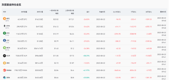 尽管如此,GBTC仍是行业内影响最大的类比特币ETF产品,根据官网数据,截至8月21日,GBTC管理资产总额达到160.78亿美元,持仓比特币数量为62.40万枚,持仓占比达到BTC总流通量的3.2%,当前二级市场报价为17美元,负溢价为26.83%,值得关注的是,自贝莱德事件后,GBTC受可转换ETF的利好影响,负溢价率呈收窄趋势,8月15日,该数值升至23.9%,创 2022 年 4 月 26 日以来新高,可见当前市场对GBTC预期有所转好。