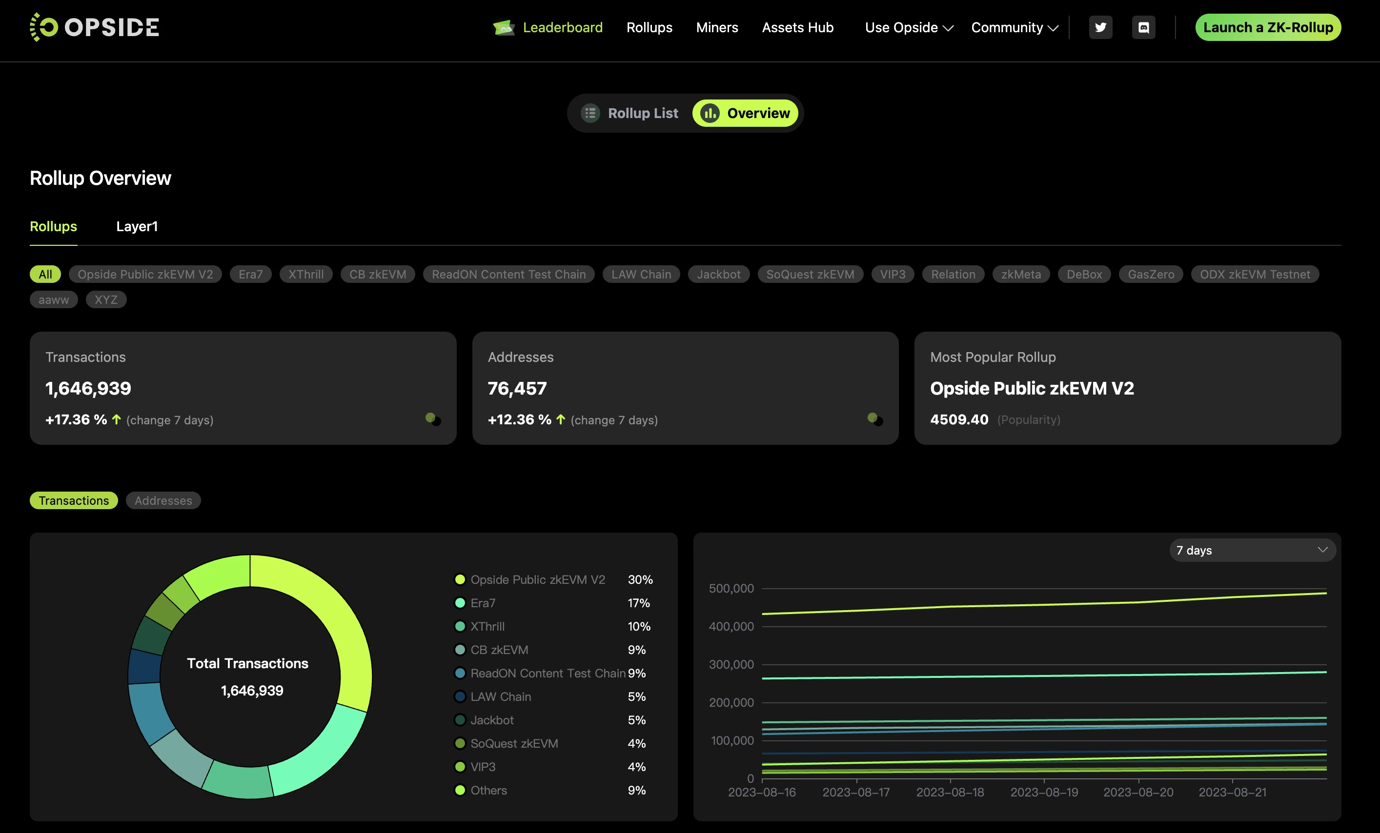 Opside Pre-alpha 测试网期间 ,普通用户参与数量达 45 万人,交易量达 13, 580, 057 笔,PoS 节点达到 16, 883 个,PoW 矿工达到 88 家。生态方面,申请参与测试网的优质项目方超 100 家,最终有 14 家经过筛选并通过 Opside LaunchBase 一键生成了专属 zkEVM 应用链,目前均保持稳定运行中。