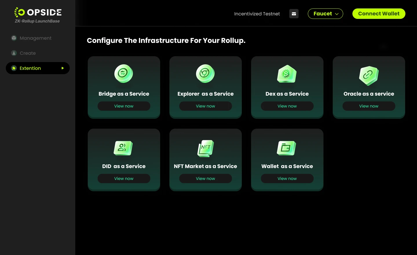 8 月中旬,Opside 官方对 ZKRollup Launchbase 进行了重大 更新 ,Rollup L1 主链选项新增支持 ETH/BSC/ Polygon 测试网,并提供多种 DA / shared sequencer 等模块化组件。此外,Rollup LaunchBase 还支持添加多种 Infra as a Service 选项供项目方进行初期选择,包括 Dex as a Service, Oracle as a Service, NFTmarket as a Service, DID as a Service 等,可选项涵盖 iZUMi、 Star Protocol 、Space ID、Supraoracle 等。