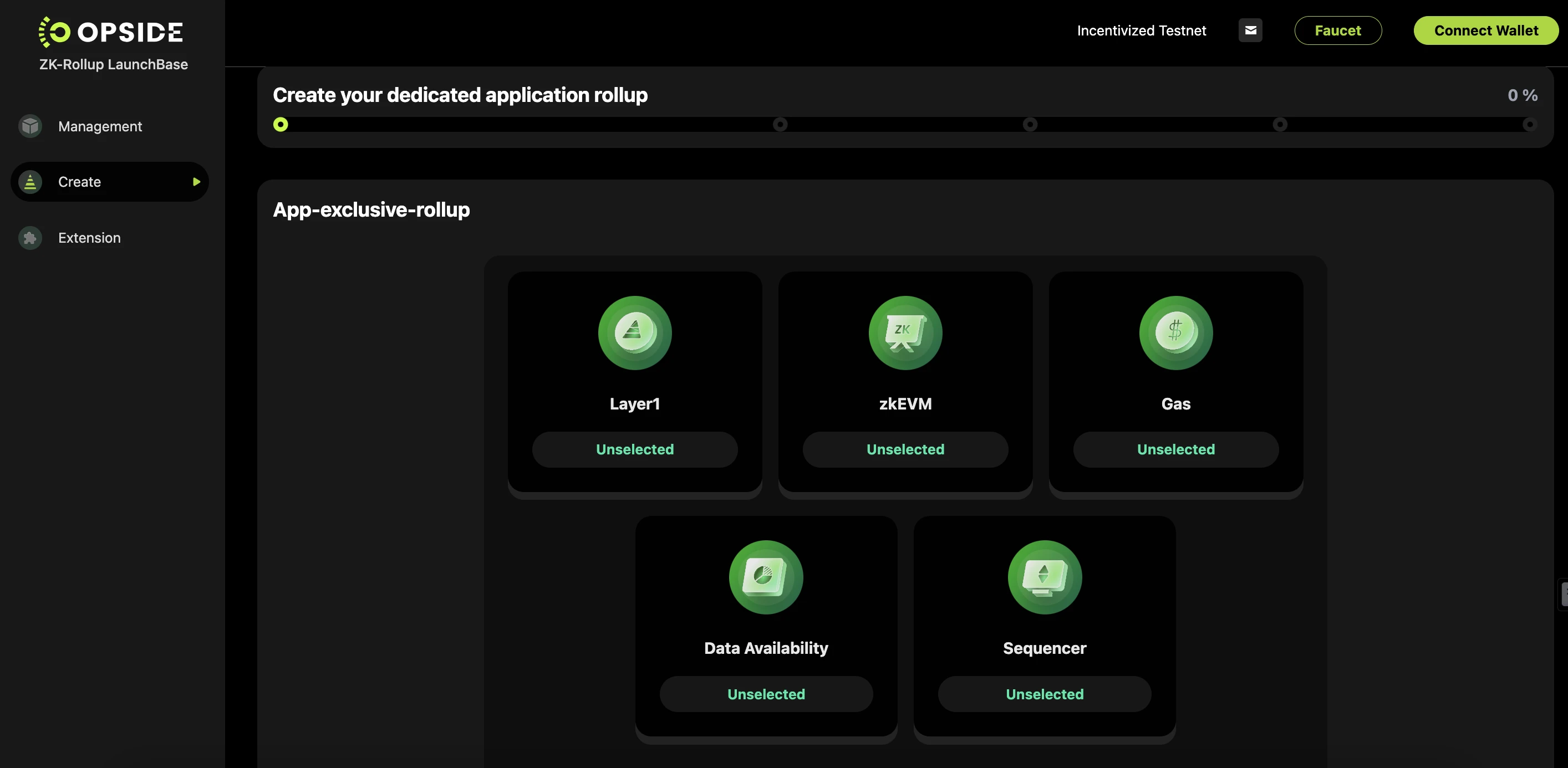 Opside 的宗旨是让 ZK-Rollup 变得更加友好和大众化,从而使得以 zkEVM 为基础的应用链大规模落地成为可能。为此,Opside 最早在 2022 年 7 月份的时候就提出了 ZK-RaaS(ZK-Rollup as a Service)服务,即满足开发者基于多个 L1 上 部署属于自己的 ZK-Rollup(zkEVM 应用链)的需求。