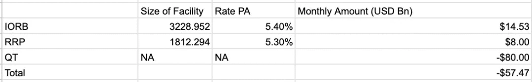 从这两张表格来看,你会得出结论认为美联储仍然在进行紧缩,因为总计每月流动性被抽取了 574.7 亿美元。然而,我省略了一个重要的免费资金释放来源:美国国债的利息支付。在下一节中,我将解释美联储的行动如何影响美国政府通过出售债券来筹集资金。当这一因素被考虑在内时,鲍威尔先生的努力看起来更加不切实际。