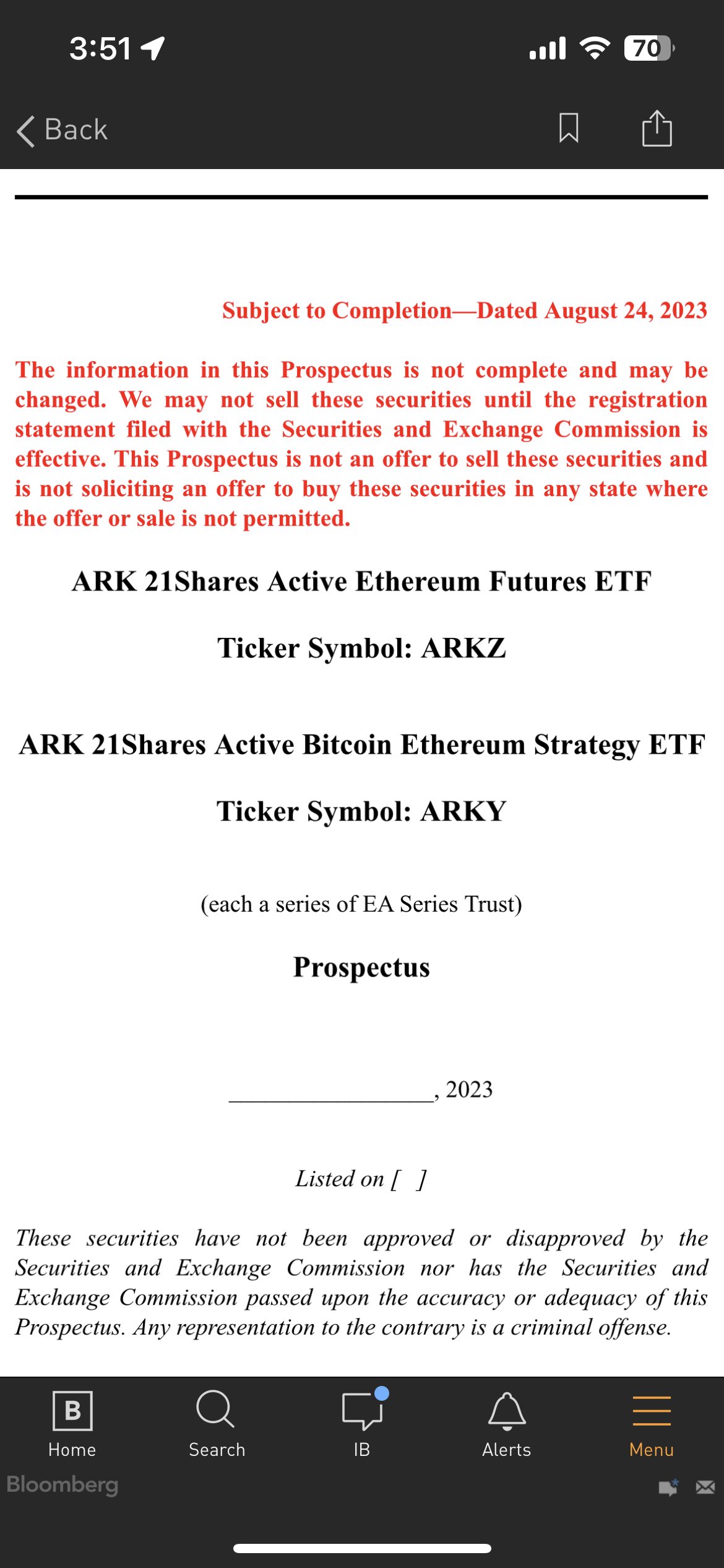 ARK Invest和21Shares联合提交两份以太坊期货ETF申请