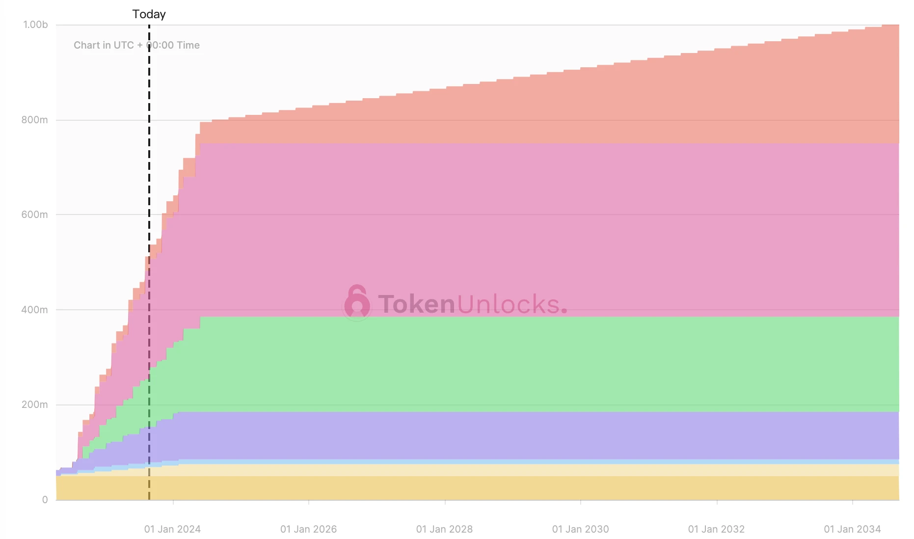 其解锁信息表明,本次解锁代币中超过一半(976 万枚)均归属于投资者,其余则为社区、金库、顾问。