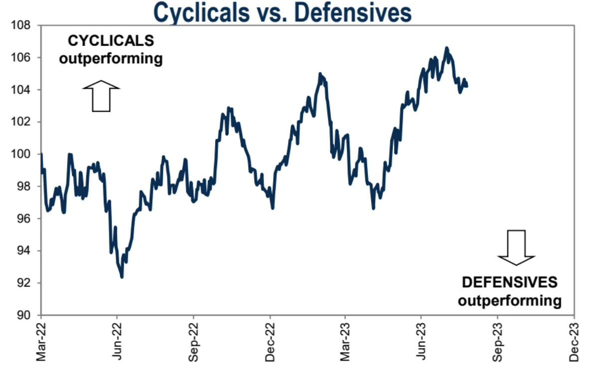 上周市场胶着,防御类和周期类股票表现没有明显分化: