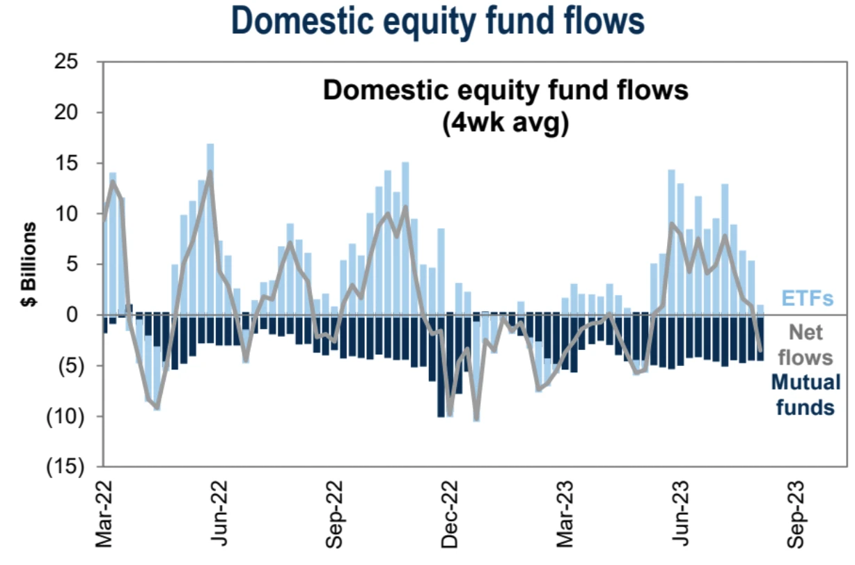 美股公募基金上周净流出 43 亿美元,为 12 周来首次: