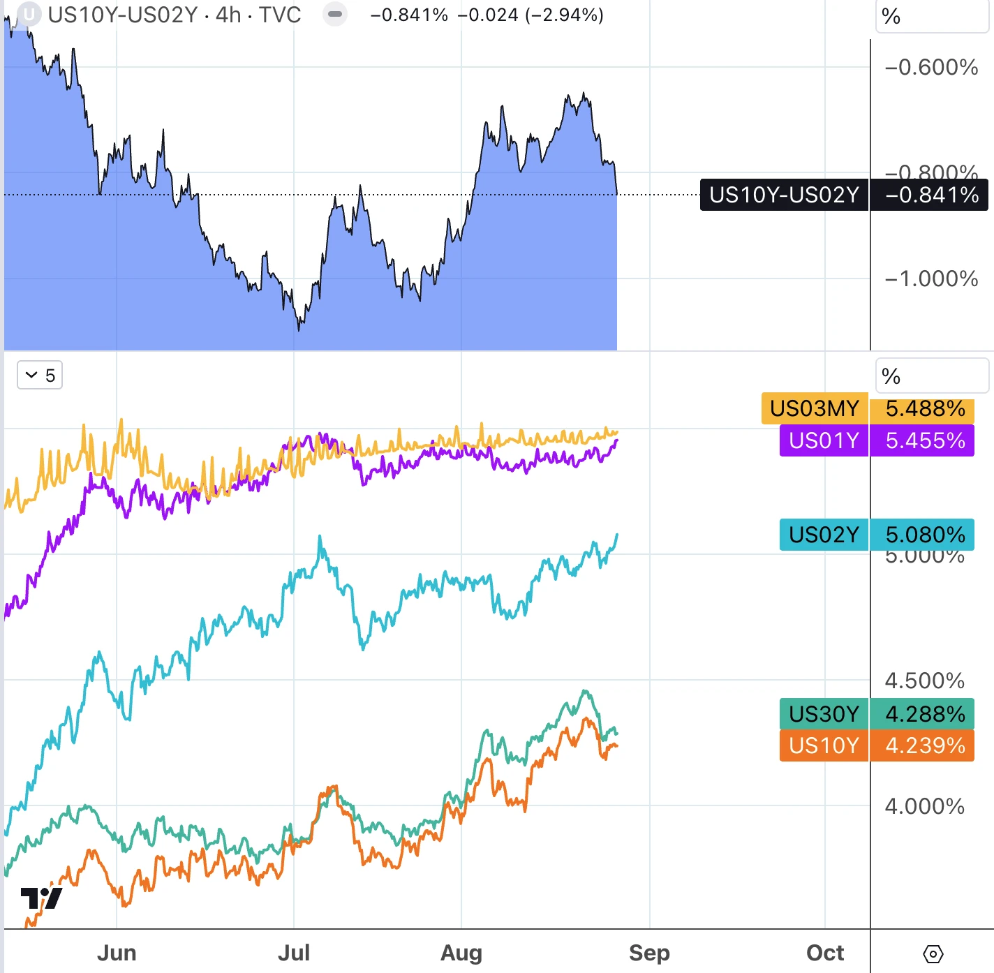 美国 8 月非农就业报告、 7 月 PCE、美国国会新财年预算协议进展、美国财长访华、中美欧 PMI、欧元区 8 月 CPI 初值等。