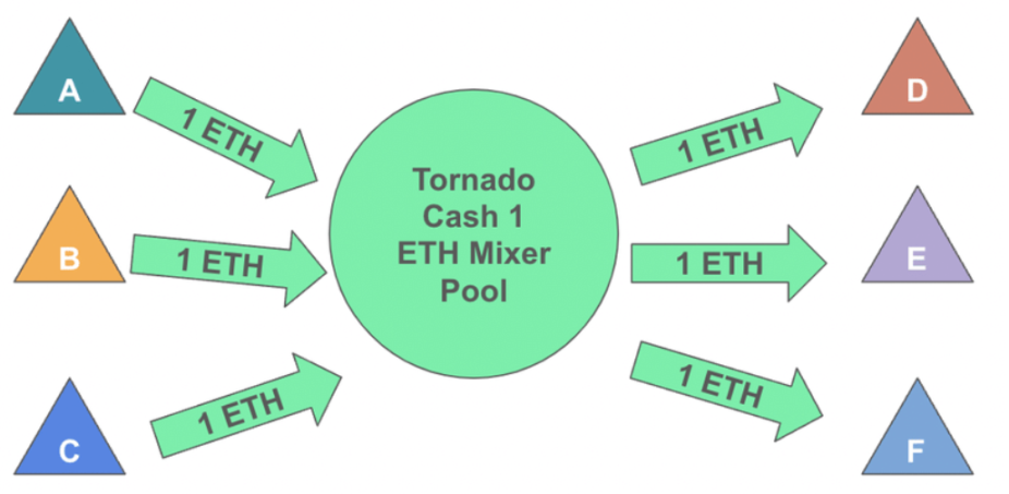 (图片来源:https://www.researchgate.net/figure/Example-of-the-Tornado-Cash-1-ETH-pool-addresses-A-through-F-deposit-to-and- withdraw_fig 1 _ 357925591 )