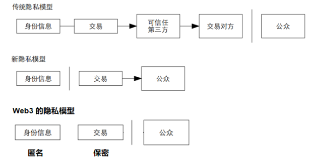 Web3 的隐私 = 匿名(身份数据)+ 保密(行为数据)。