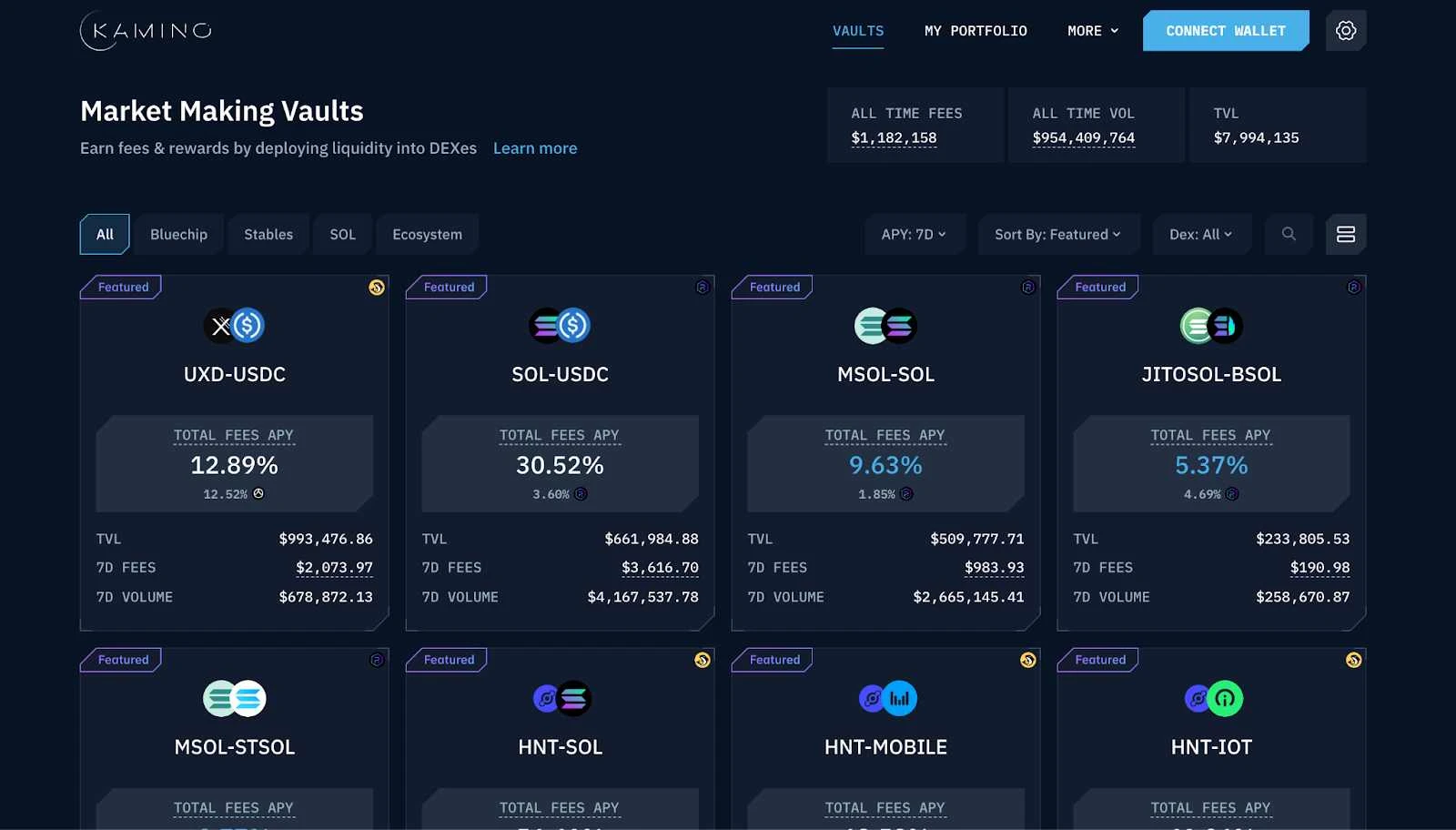 Kamino 是一个集中的流动性管理协议,类似于 Arrakis,任何人都可以将资金存入他们在 Orca 和 Raydium 上的储藏库。