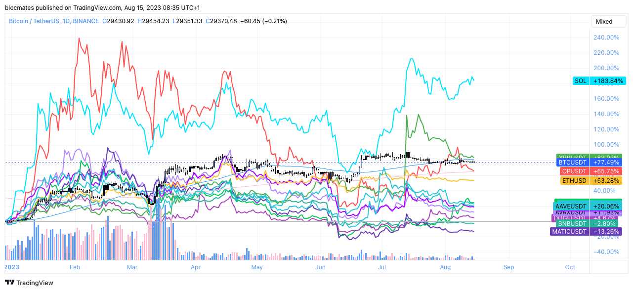 总之,从那以后的 9 个月里,似乎已经尘埃落定,曾经希望 Solana 灭亡的人现在正在舔舐他们的伤口,因为它是今年迄今为止加密货币前 50 名资产中表现最好。事实证明,应对情况是一个极好的促进上涨的动力。